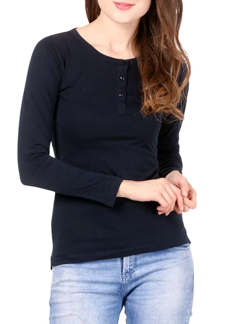 - » round neck long sleeved henley tee