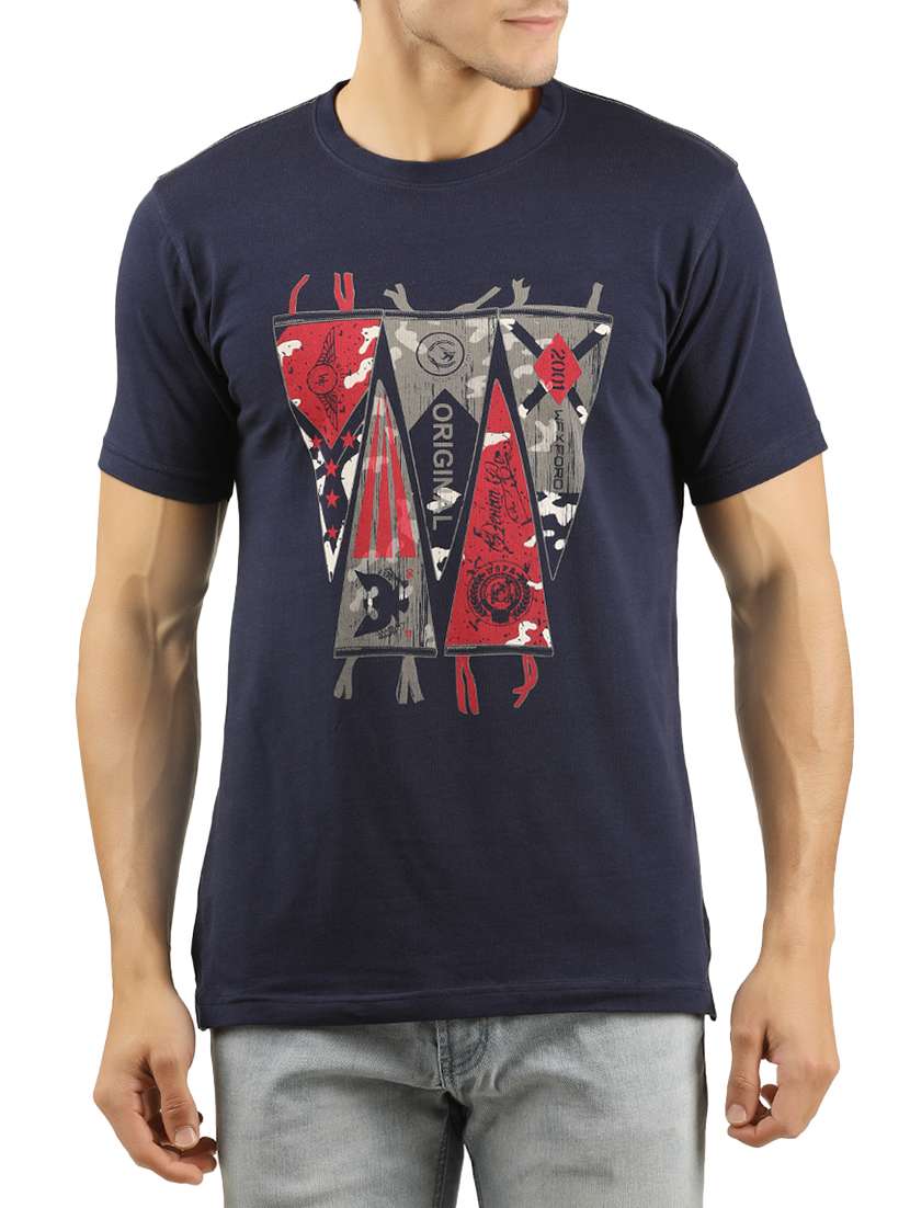 navy blue cotton chest print t-shirt