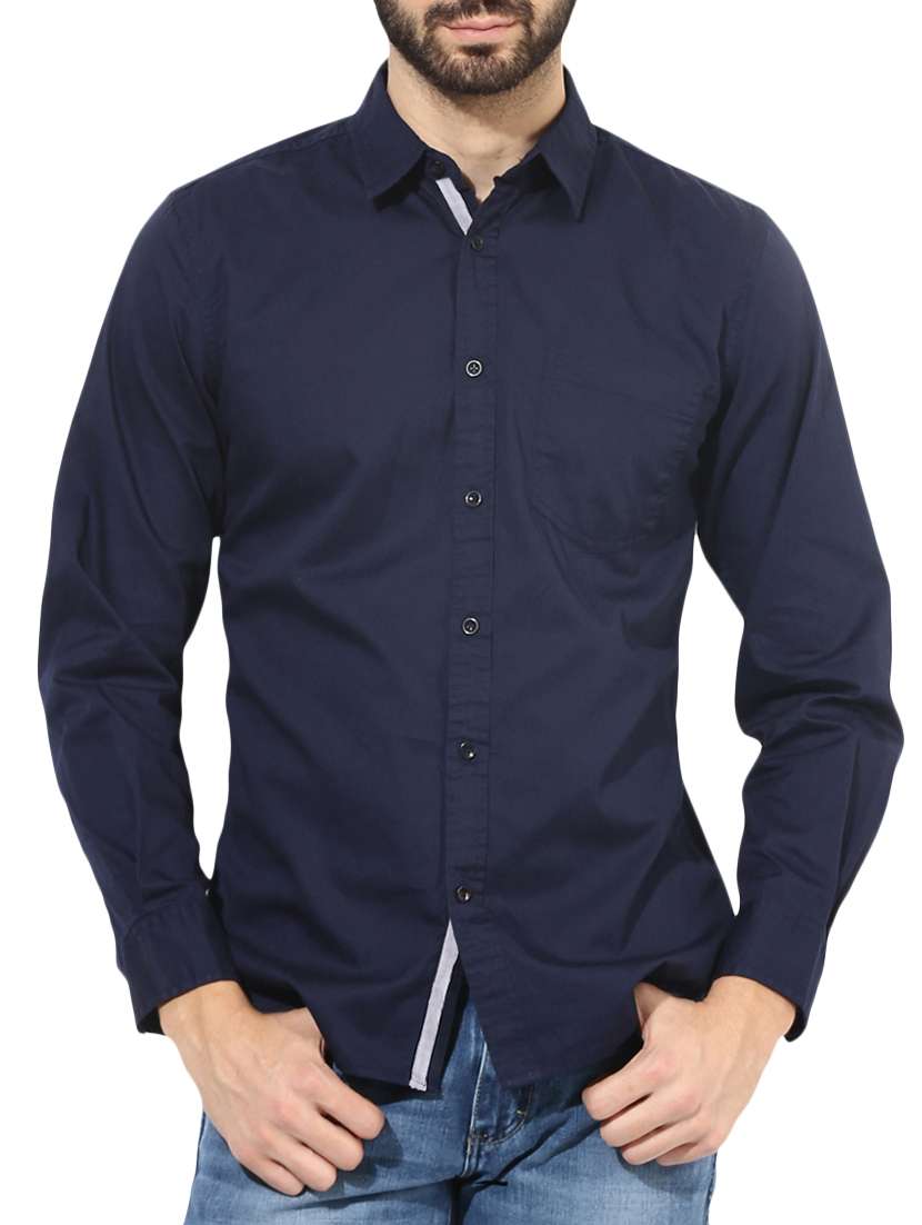 navy blue cotton casual shirt