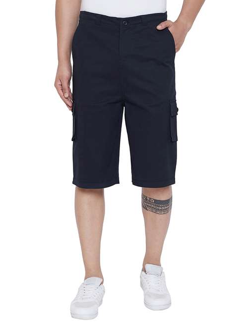 navy blue solid three - fourth