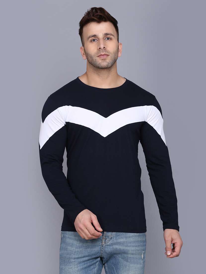 navy blue color block cut & sew t-shirt