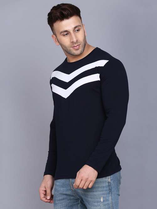 navy blue color block cut & sew t-shirt