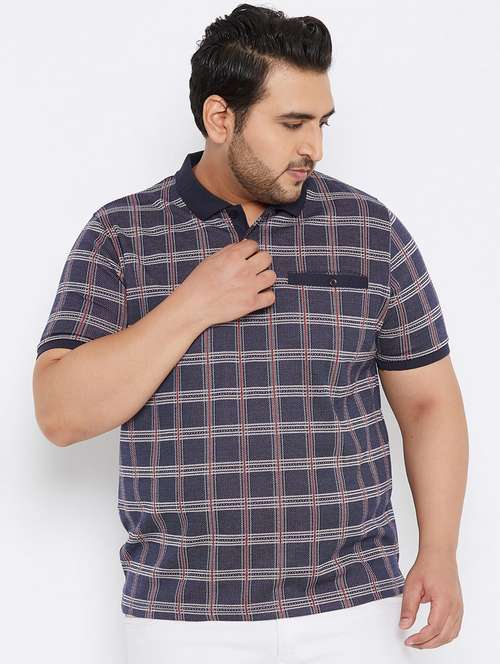 - » plus size navy blue checkered polo t-shirt