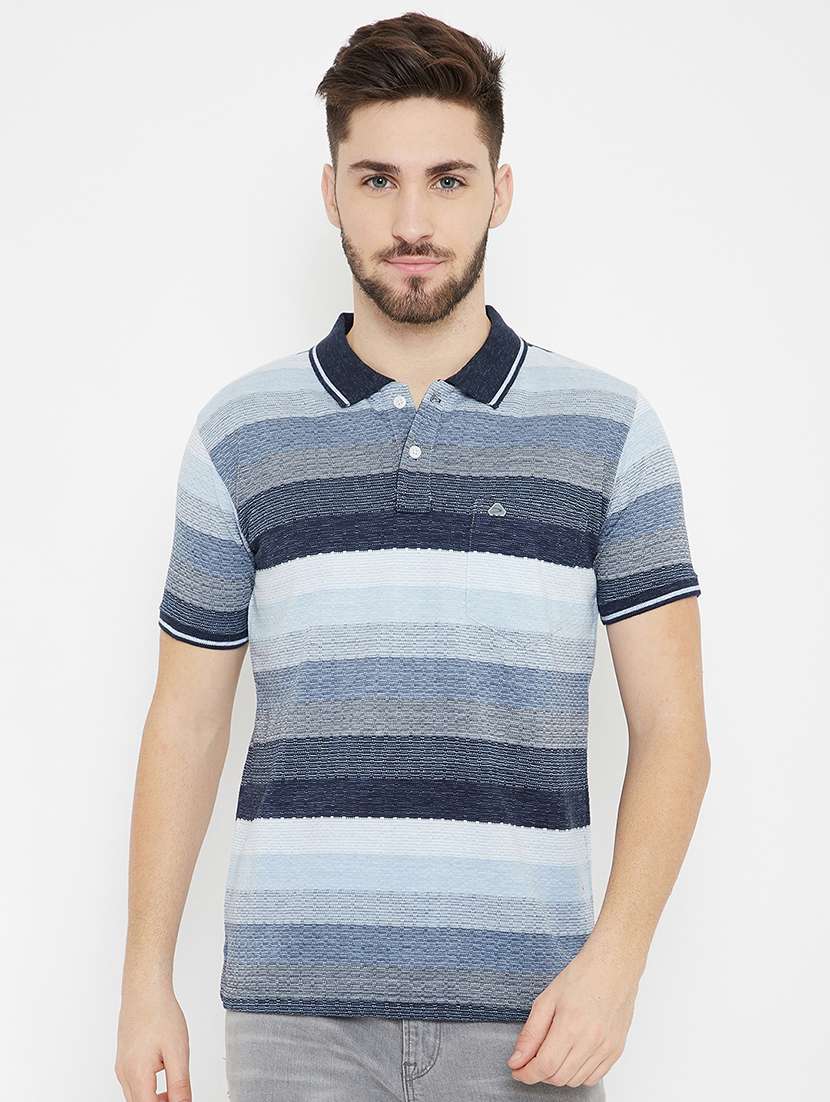 blue striped polo t-shirt