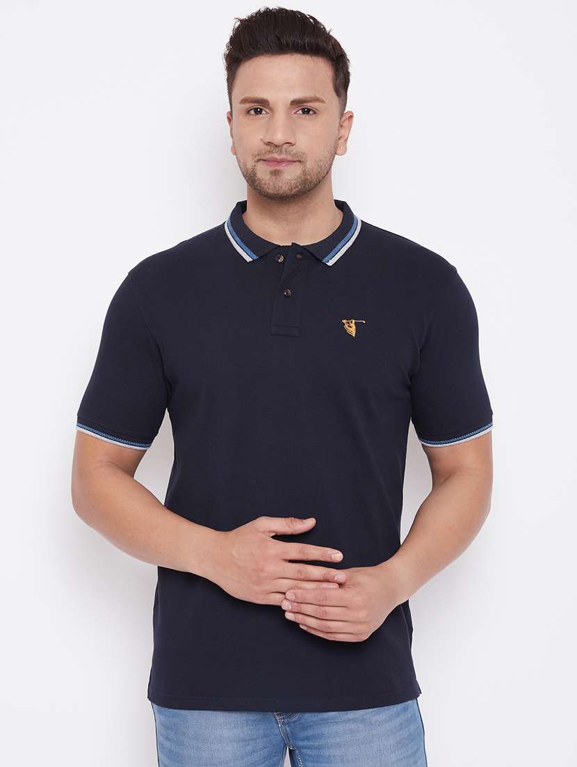 navy blue solid polo t-shirt