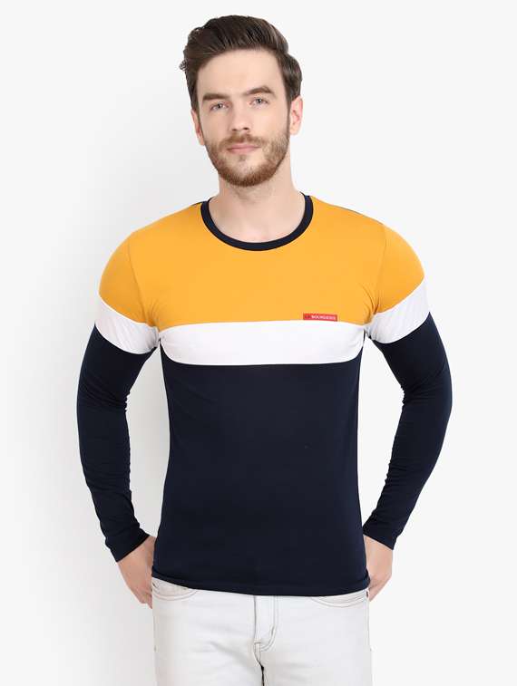 navy blue color block cut & sew t-shirt