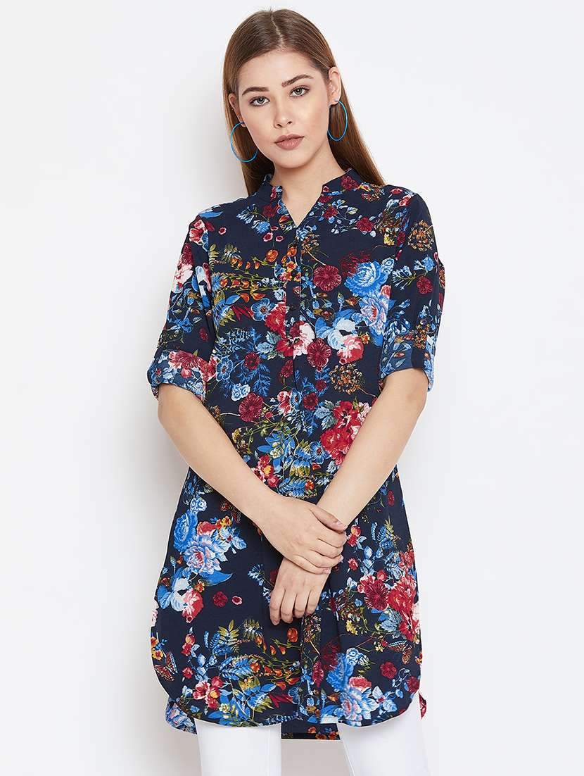 roll up sleeved floral tunic