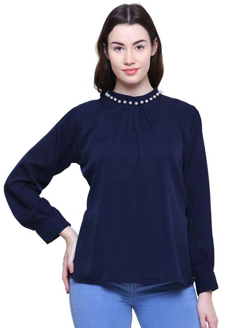 - » pearl embellished pleat detail top