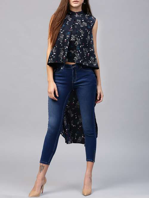 navy blue crepe high low tunic