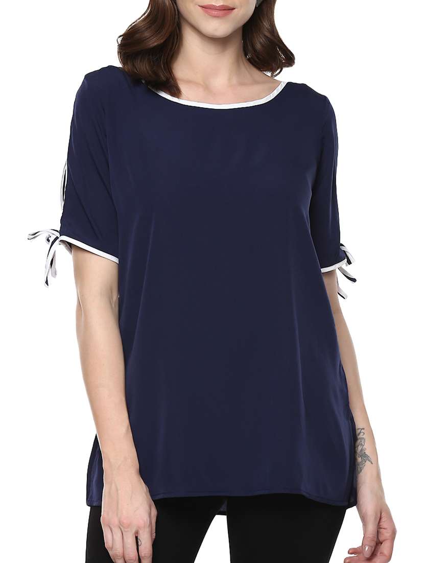- » contrast binding split tie sleeve top