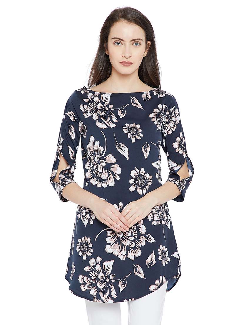 - » navy blue slit sleeve floral print regular tunic