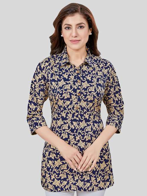 - » navy blue three quarter sleeve a-line kurti