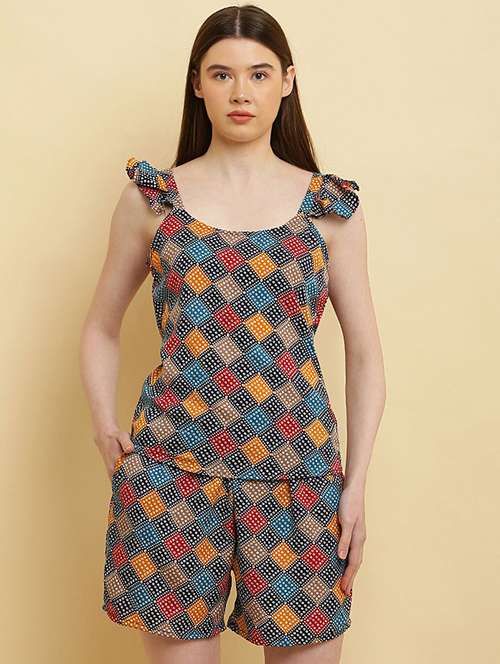 - » women round neck printed shorts nightwear set