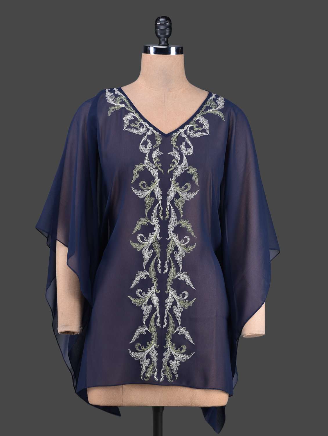 - » navy blue embroidered kaftan top