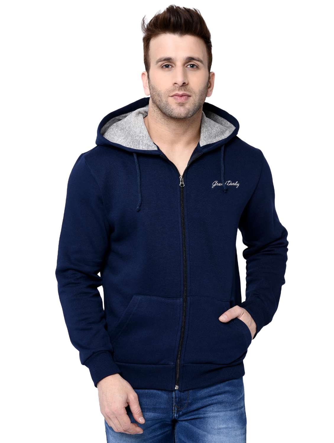 navy blue fleece sweatshirt