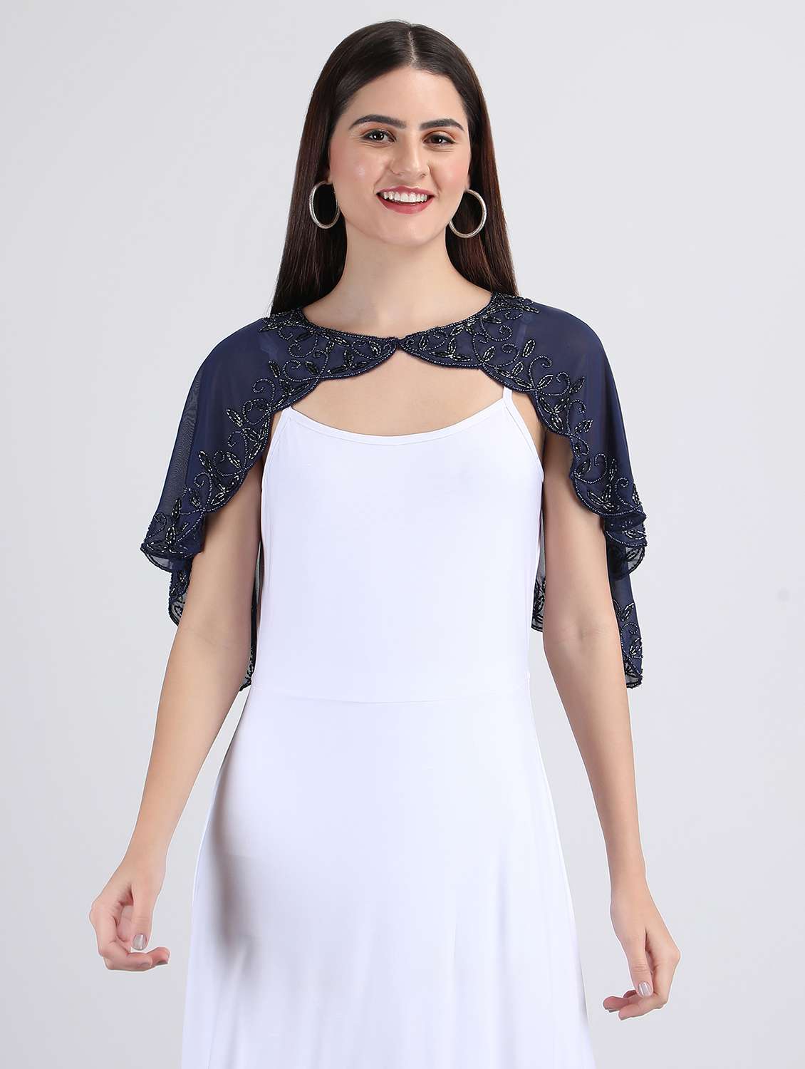 - » navy blue embroidered georgette cape