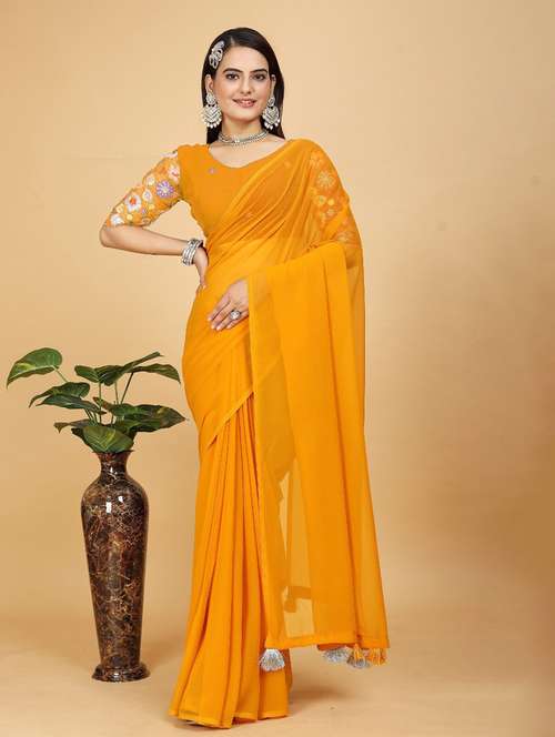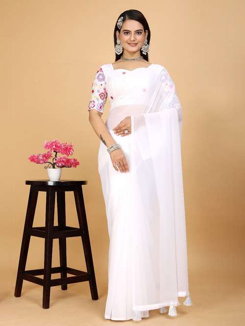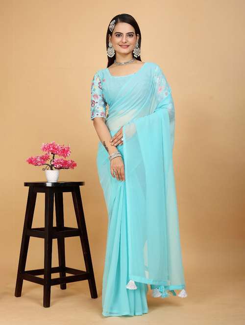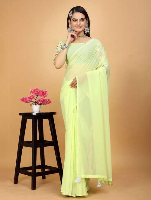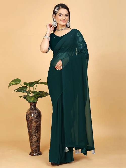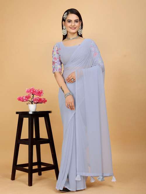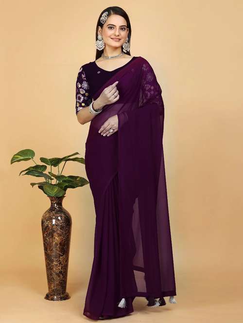 women solid plain saree with blouse