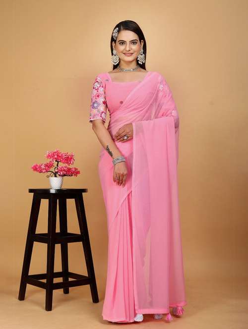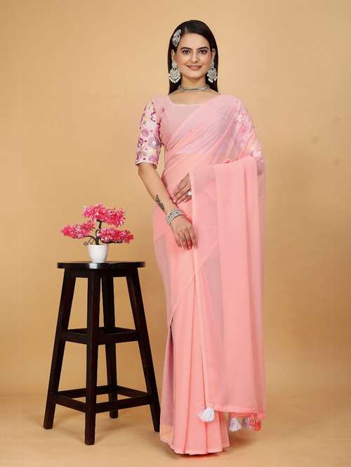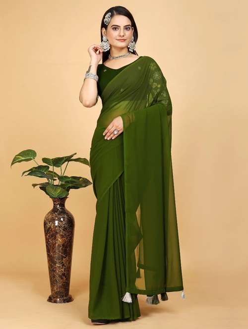 - » women solid plain saree with blouse