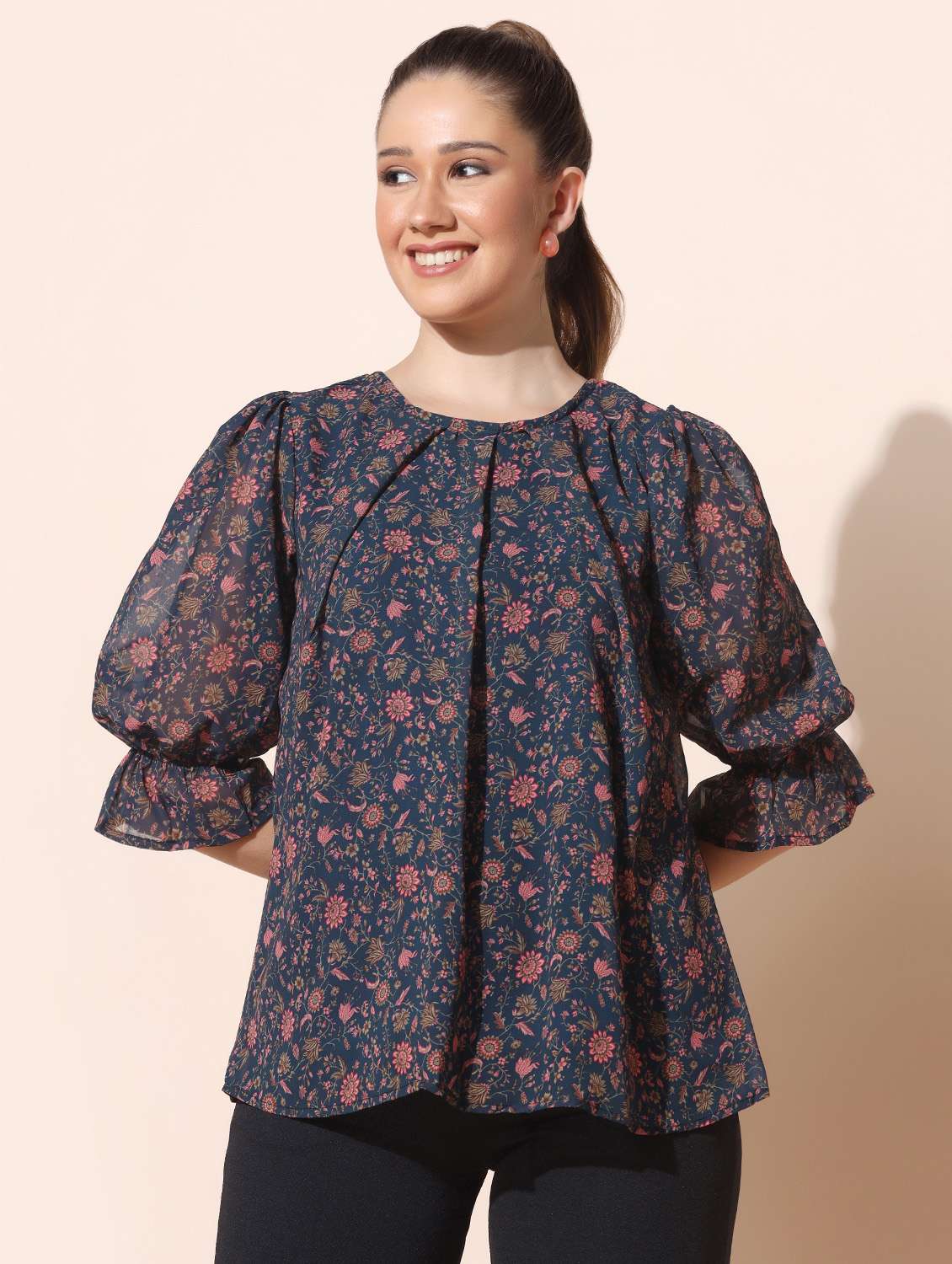 navy blue georgette regular top