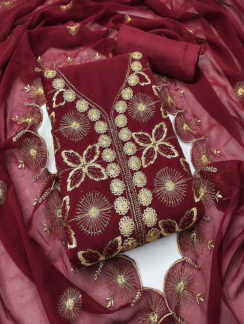 - Look ultra gorgeous in unstitched suits from Lilots and grab these beautiful suits in maroon colour.
