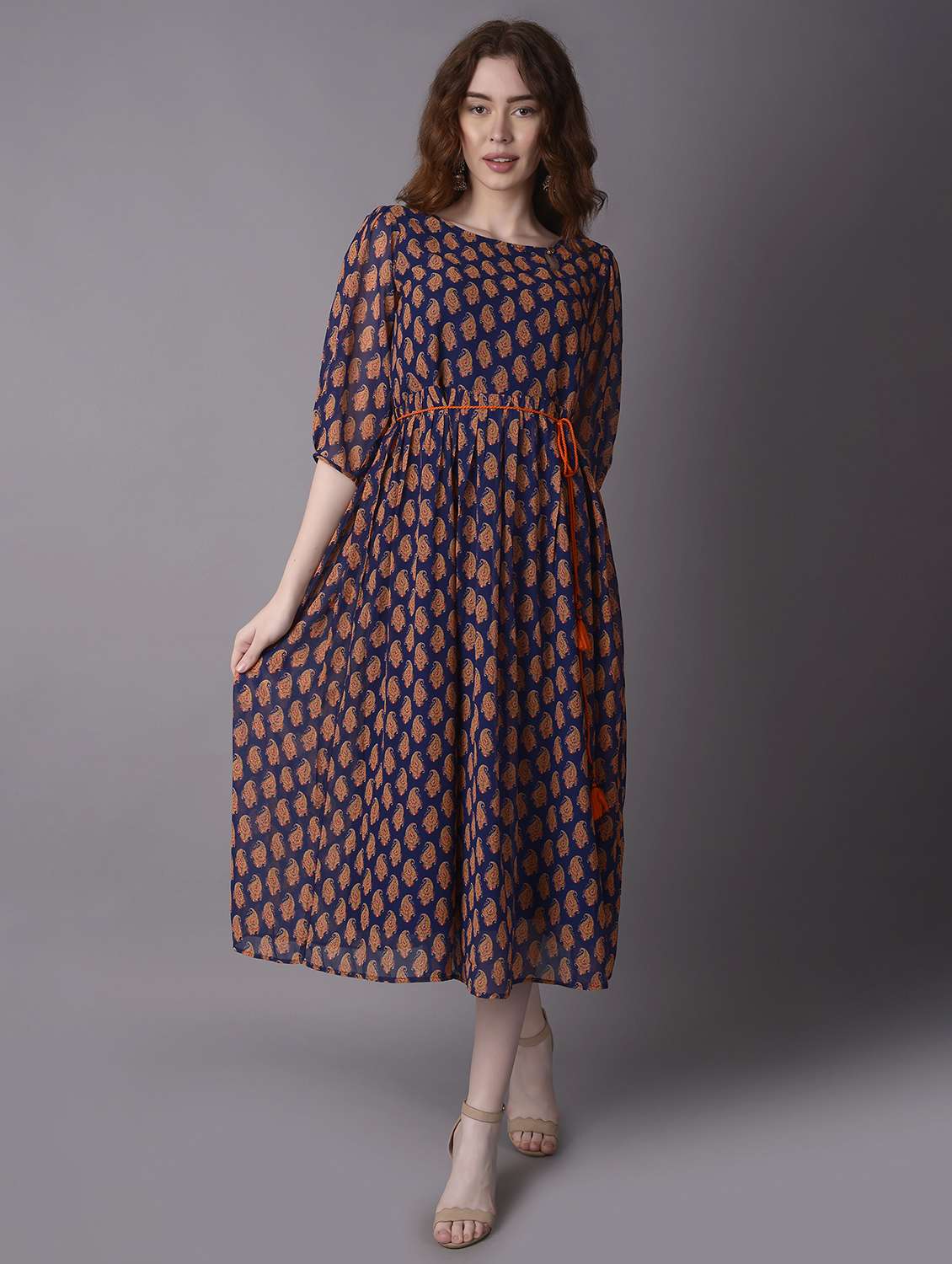 - » navy blue georgette fit & flare ethnic dress