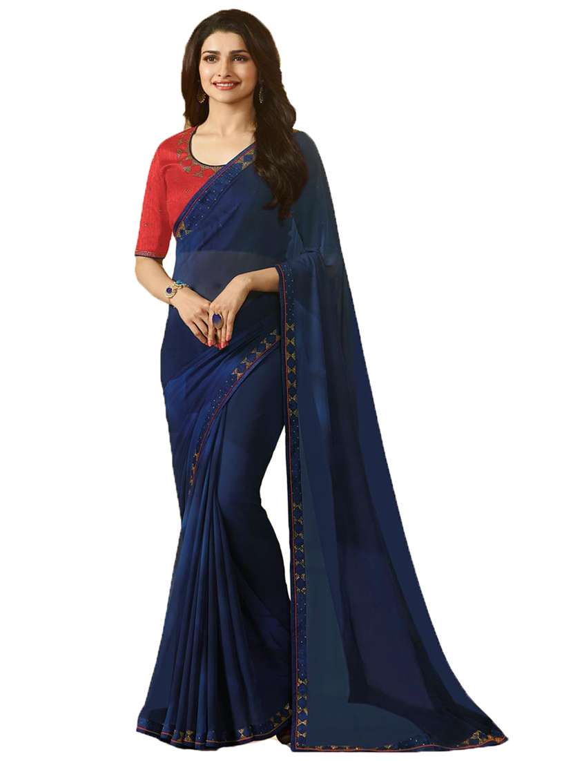 This Trendy Store's beautiful saree is crafted with superior-quality of Georgette fabric. The designer Swaroski stonework lace border of the saree gives it an elegant touch. The stonework blouse of the saree perfectly adds charm to your appearance at all special events. Pair this saree with matching jewelry for a head-turning look.