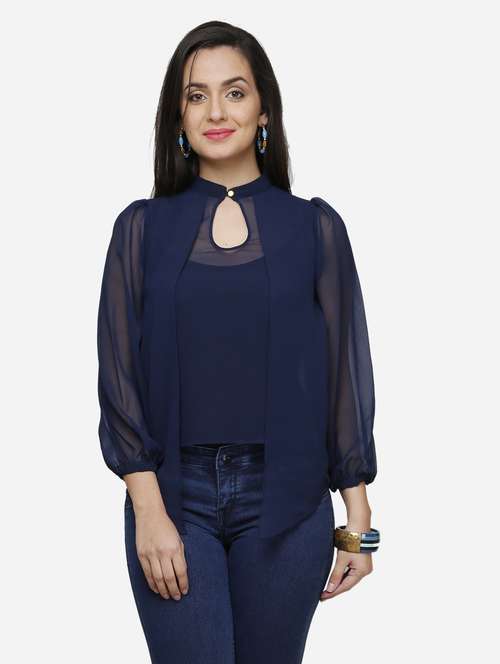 - » women blue solid puff sleeve layered top