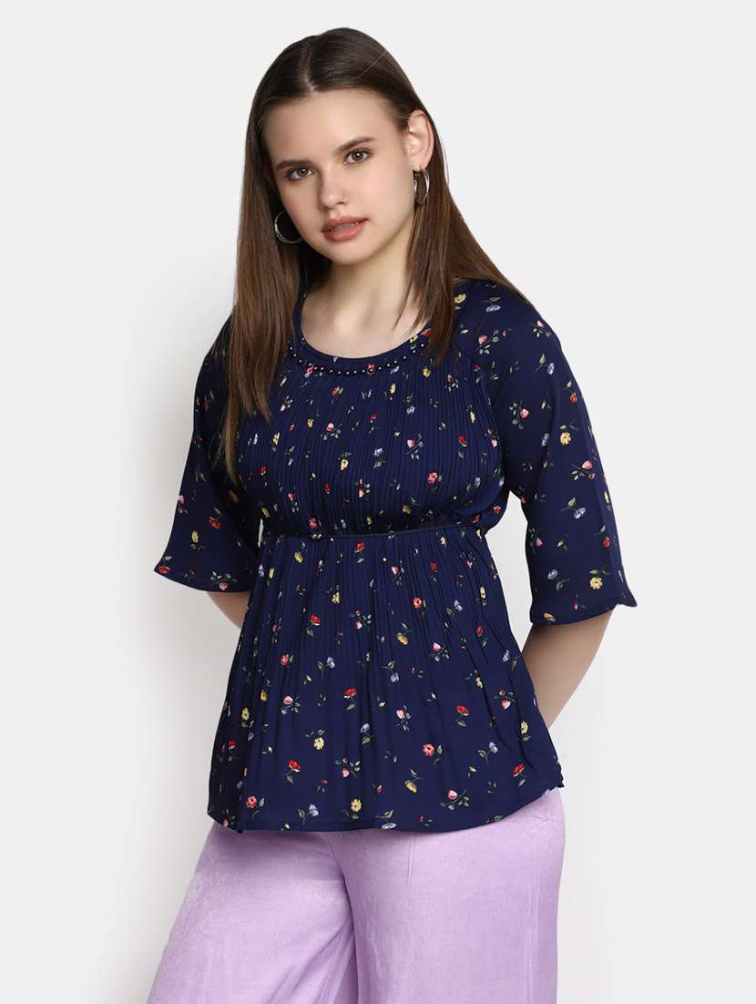 - » women blue printed peplum top