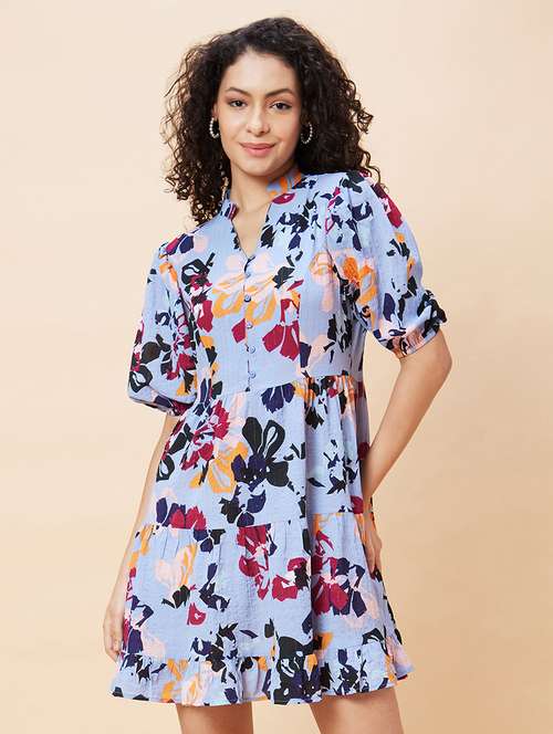 - Dress up in a soothing pattern and don this dress made of polyester material.