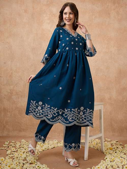 - Find gorgeous sets of ethnic wears in trending designs in navy blue colors suitable for festive wear of occasions.