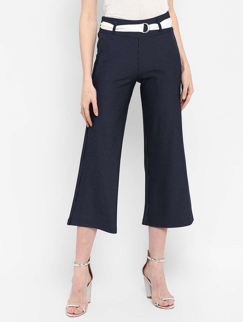 belted striped capri
