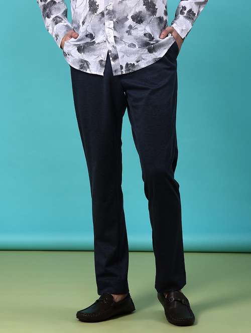 - » men solid mid rise flat front casual trouser