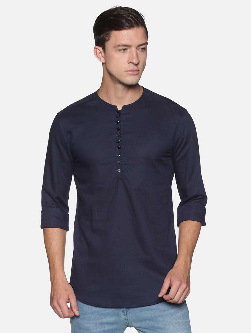 - » navy blue solid linen short kurta