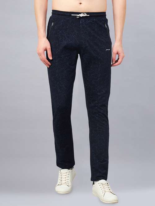 - » navy blue printed slim fit full length track pant