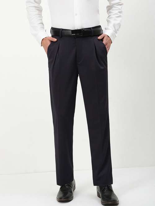 - » men mid rise solid pleated formal trouser