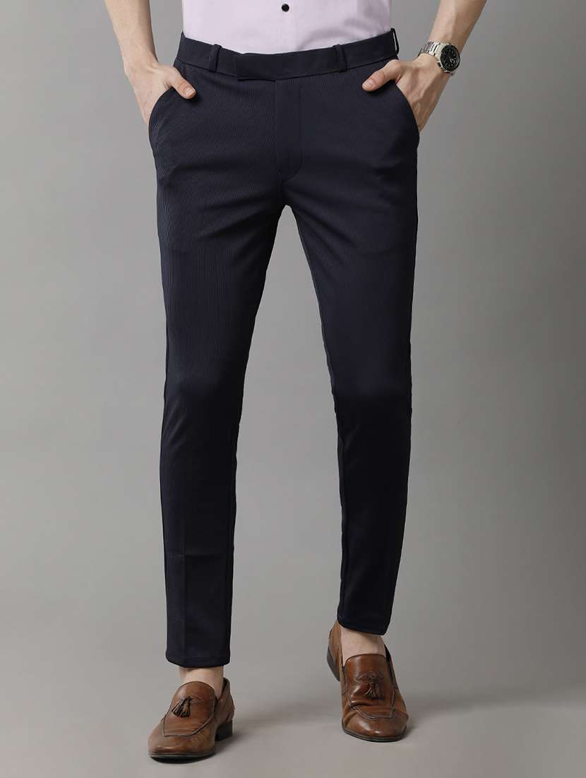 navy blue lycra flat front formal trouser