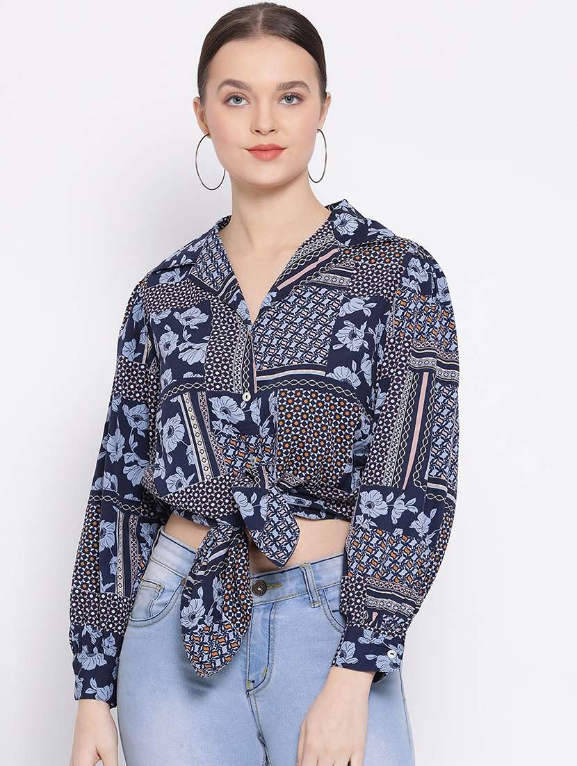 - » tie front bishop sleeved shirt