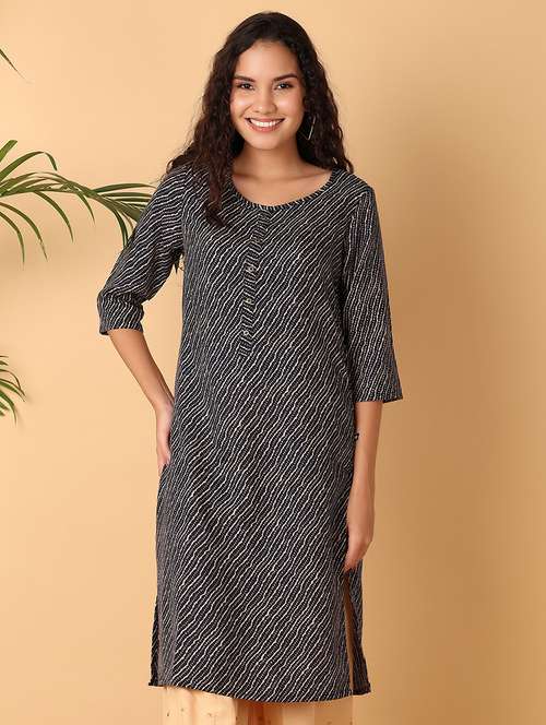- Grab this beautiful kurta made up of cotton fabric featuring round neck designs.