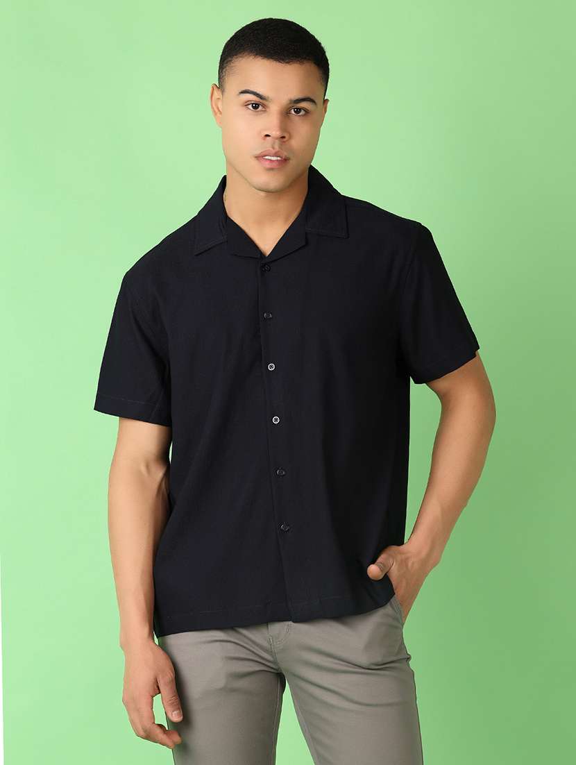 - » men solid short sleeve casual shirt
