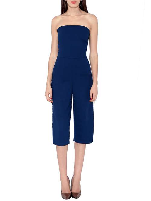 solid navy blue 3/4 jumpsuit - 14237685 - Very Small Image - 1