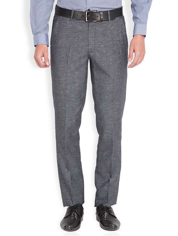 navy blue polyester flat front formal trouser