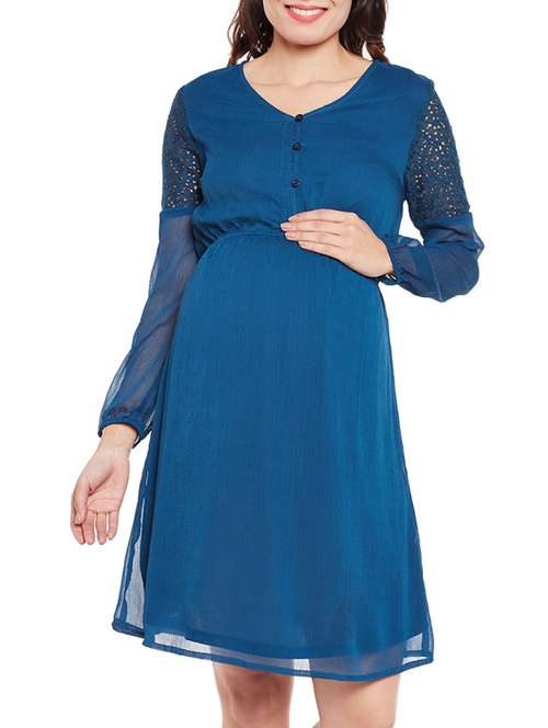 blue solid dress maternity wear