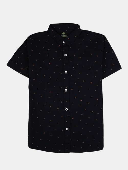 navy blue printed cotton casual shirt