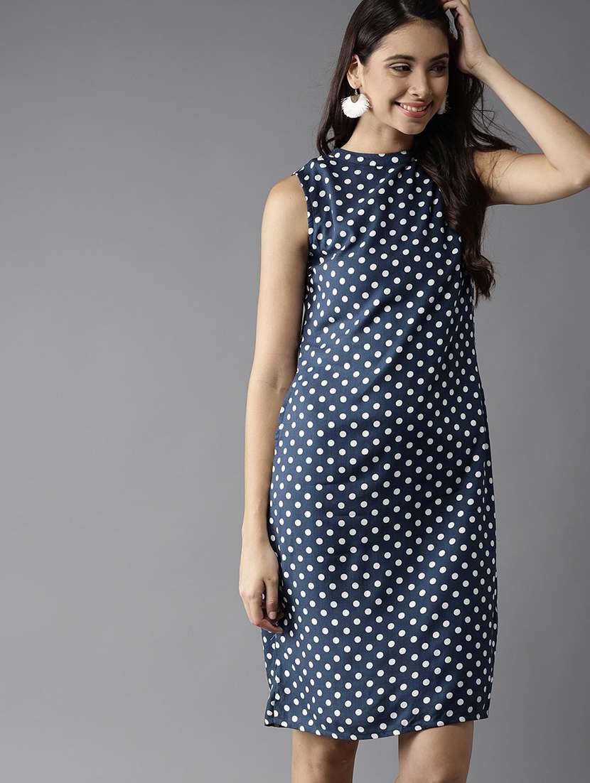 - » round neck polka dot a-line dress