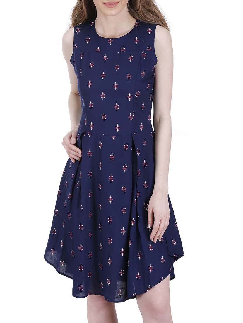 This ikat print rayon fit and flare dress complements every body type. This dress adds a Boho-Indian vibe to your wardrobe.
