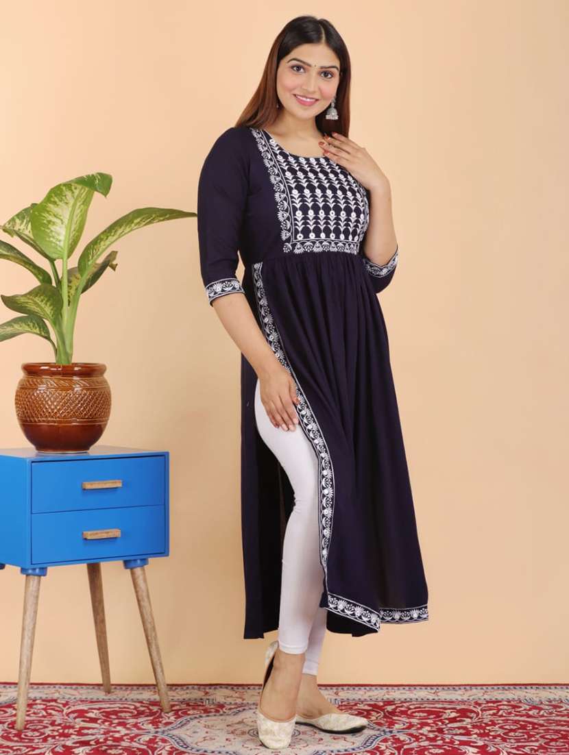 - » navy blue three quarter sleeve side slit kurta