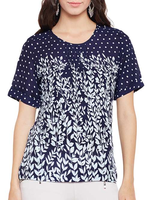 - » navy blue printed rayon top