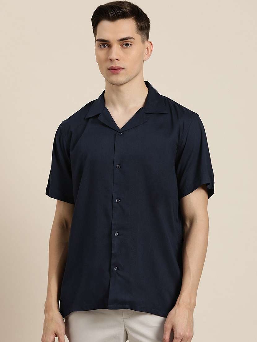 - » men solid cuban collared short sleeve loose fit shirt