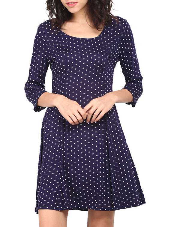 - » navy blue color, rayon a-line dress