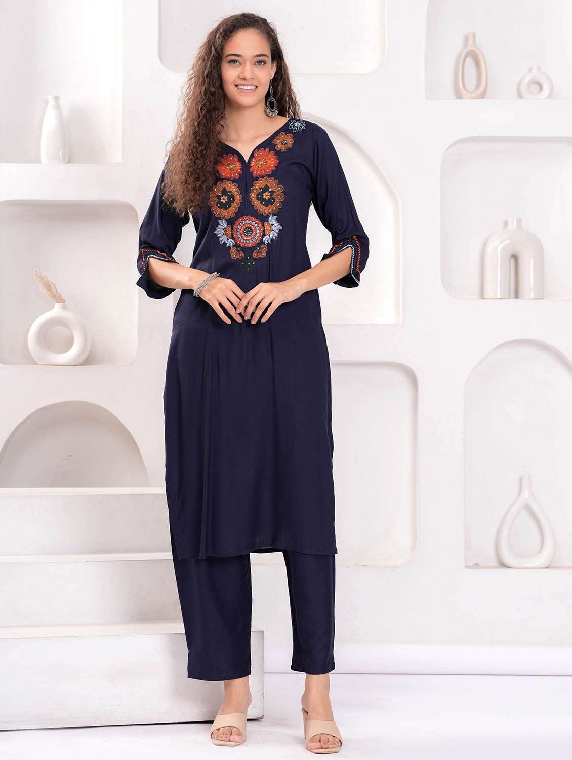 - Find gorgeous sets of ethnic wears in trending designs in navy blue colors suitable for casual wear of occasions.